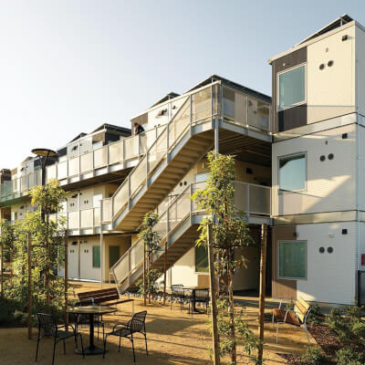 Our 204-unit, multi-story modular community in San José began welcoming individuals and couples in FY25. Funded by a $51M state Homekey award, Branham addresses San José’s acute need with private units, en suite bathrooms, kitchenettes, community spaces, and a dog park.